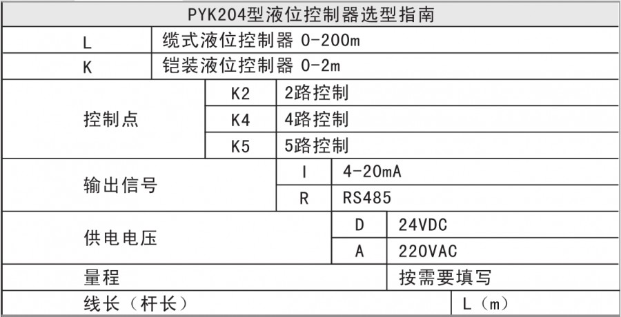 PYK204等系列液位控制器是集液位測量、顯示、輸出、控制于一體的智能數(shù)字液位控制產(chǎn)品。適用于非密封容器的液位測量,并可遠(yuǎn)傳輸出4-20mA及RS485組網(wǎng)。