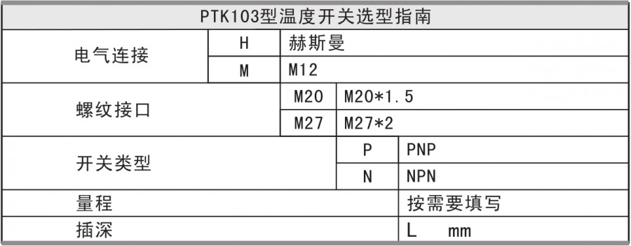 PTK103智能溫度開(kāi)關(guān)是集溫度測(cè)量、顯示、輸出、控制于一體的智能數(shù)字壓力測(cè)控產(chǎn)品。不銹鋼接頭、高精度PT100、全數(shù)字電路板組成,顯示直觀,操作簡(jiǎn)單,安全可靠,開(kāi)關(guān)點(diǎn)現(xiàn)場(chǎng)設(shè)置。廣泛應(yīng)用于水電、自來(lái)水,石油、化工、機(jī)械、液壓等行業(yè),對(duì)流體介質(zhì)的溫度進(jìn)行測(cè)量和控制。